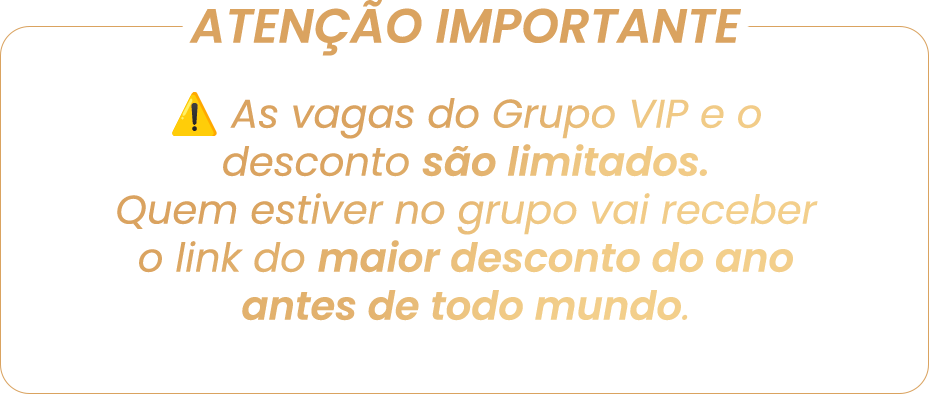 Entre para o Grupo da Black Friday e receba o link antes de todo mundo, além de condições exclusivas e bônus.